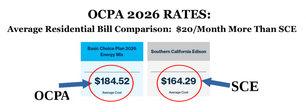 According to OCPA’s own website, Irvine ratepayers enrolled in OCPA are paying about $20/month more than SCE customers pay: